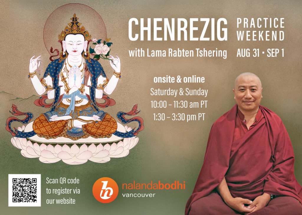 Please join us for a weekend of Chenrezig practice led by our Canadian resident teacher Lama Rabten Tshering.